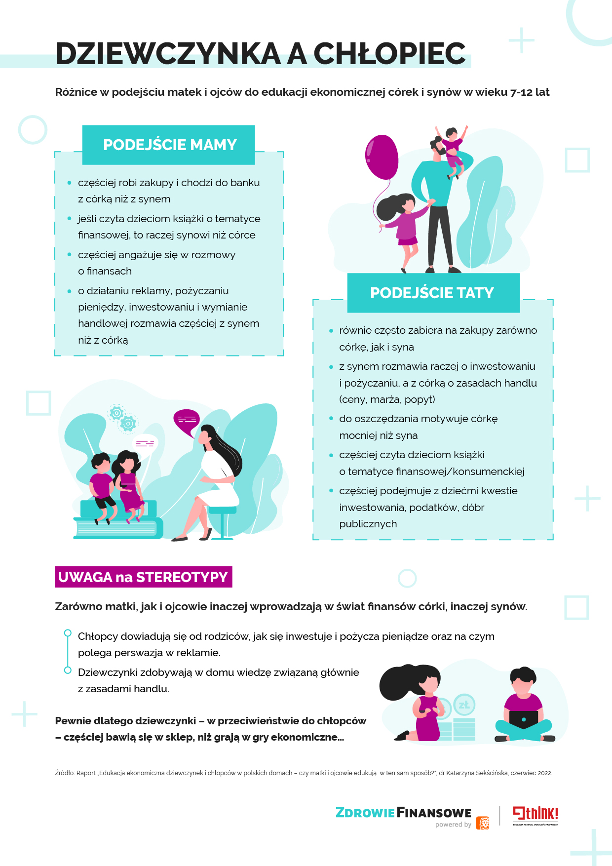 Interesuje Cię ten temat? Zapoznaj się ze wszystkimi wynikami najnowszego badania przeprowadzonego na zlecenie Fundacji Think! i City Foundation. Raportem „Edukacja ekonomiczna dziewczynek i chłopców w polskich domach – czy matki i ojcowie edukują w ten sam sposób?” autorstwa dr Katarzyny Sekścińskiej pobierzesz TUTAJ.